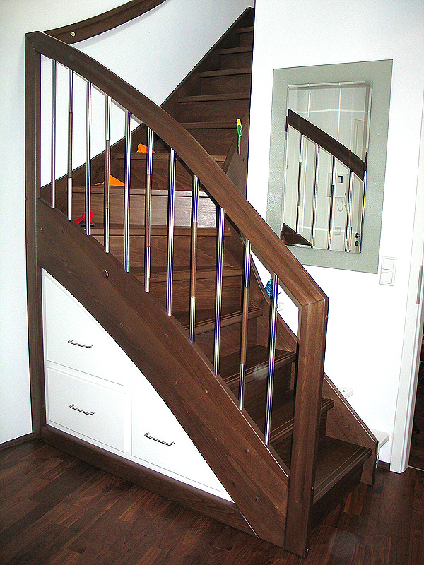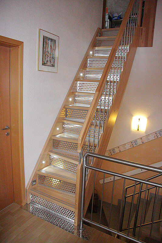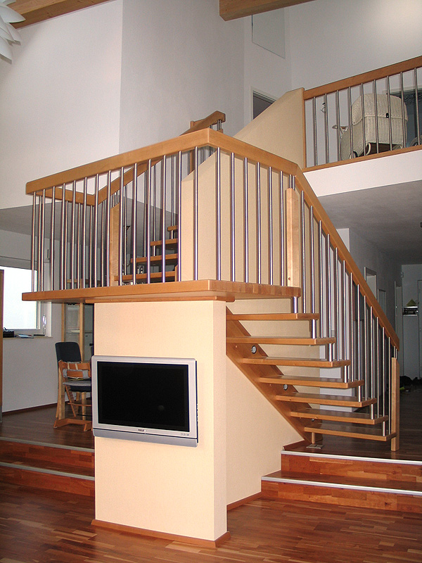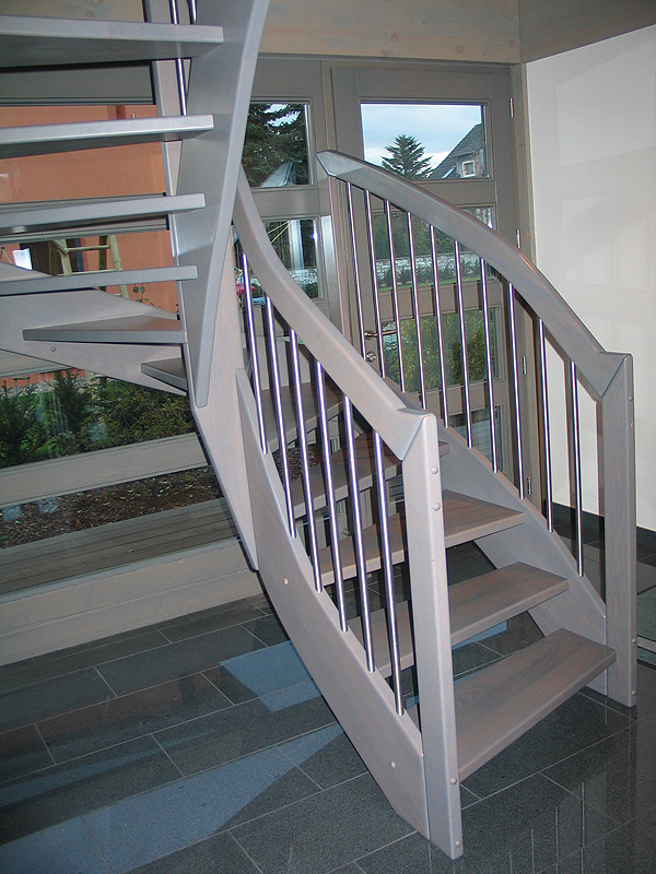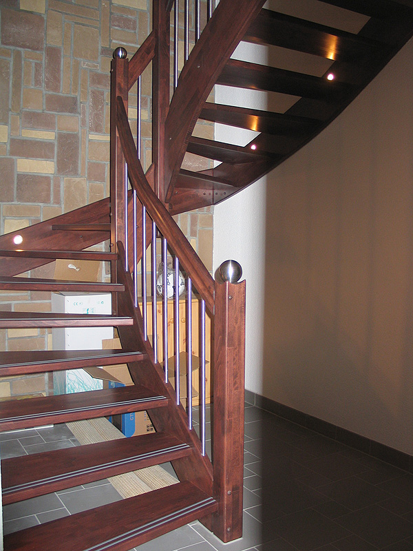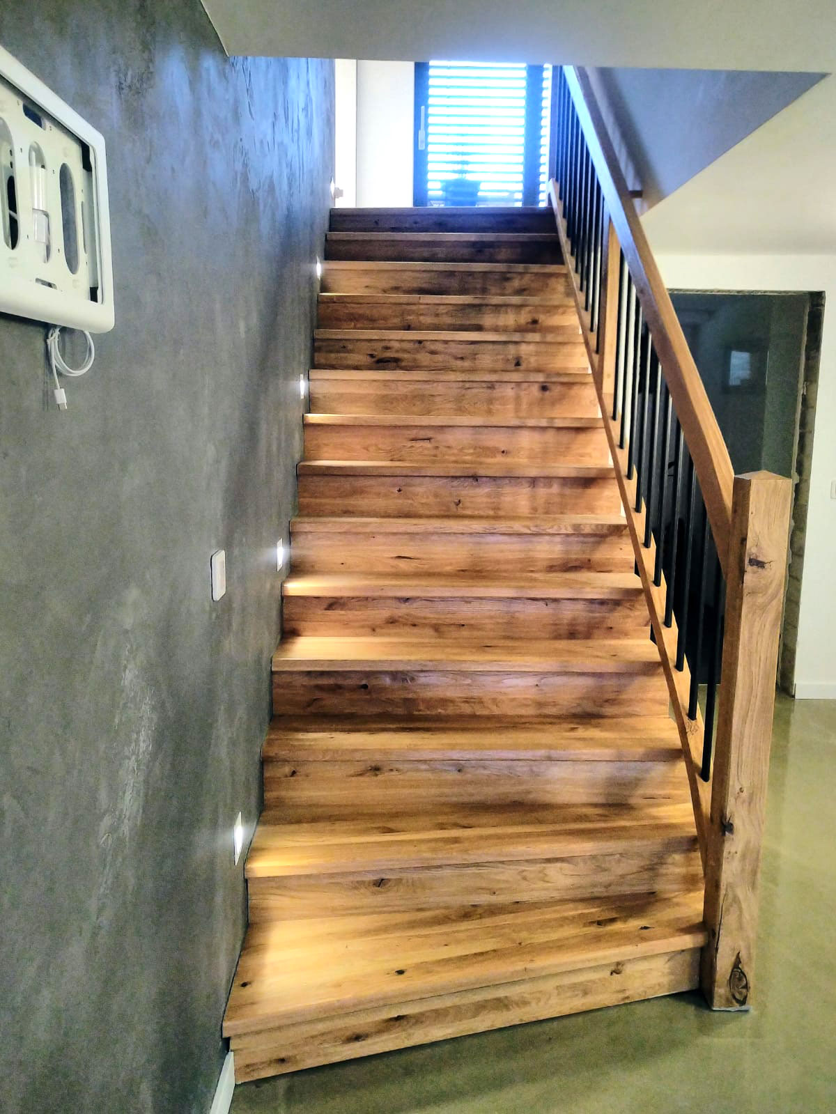 Holztreppen mit Edelstahlgeländern sind eine gelungene Verbindung aus zeitloser Eleganz und moderner Ästhetik.